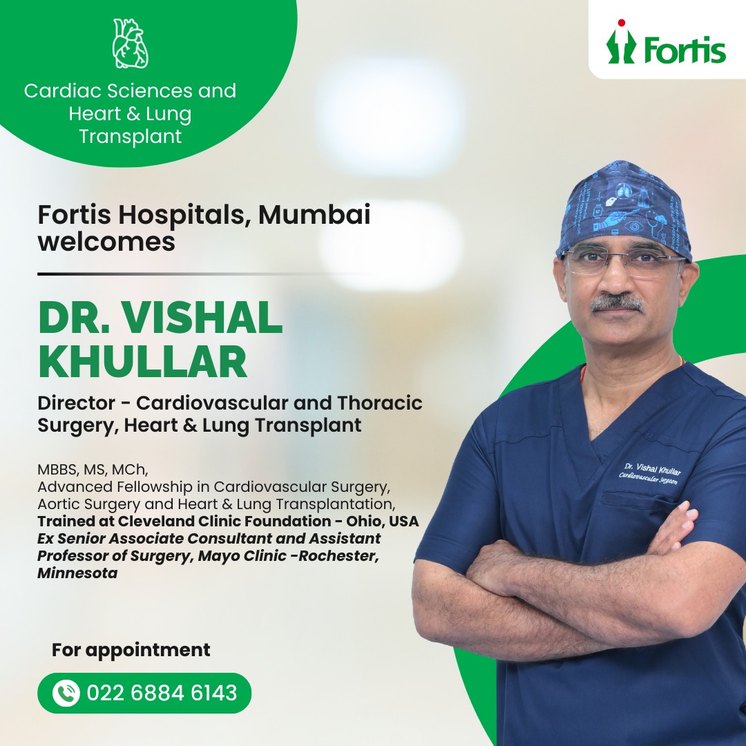 Dr. Vishal Khullar is an internationally acclaimed Cardiac Surgeon and a leading Cardiovascular surgeon in India. He has performed countless successful surgeries, earning him a prominent place in the medical community and therefore he is the most preferred Cardiac Surgeon in Mumbai, India. Dr. Khullar is the Director Cardiovascular and Thoracic Surgery, Heart & Lung Transplant at Fortis Hospital Mulund and Fortis S L Raheja Hospital, Mahim, Mumbai.